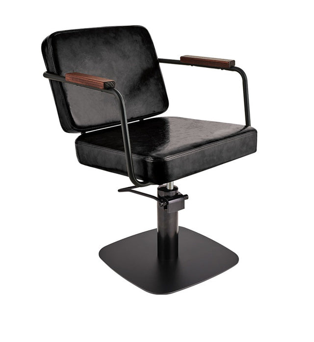 Ayala Enzo C1 – Scaun Profesional de Coafor Negru cu Bază Pătrată Neagră | Eleganță și Confort Premium pentru Saloane Moderne