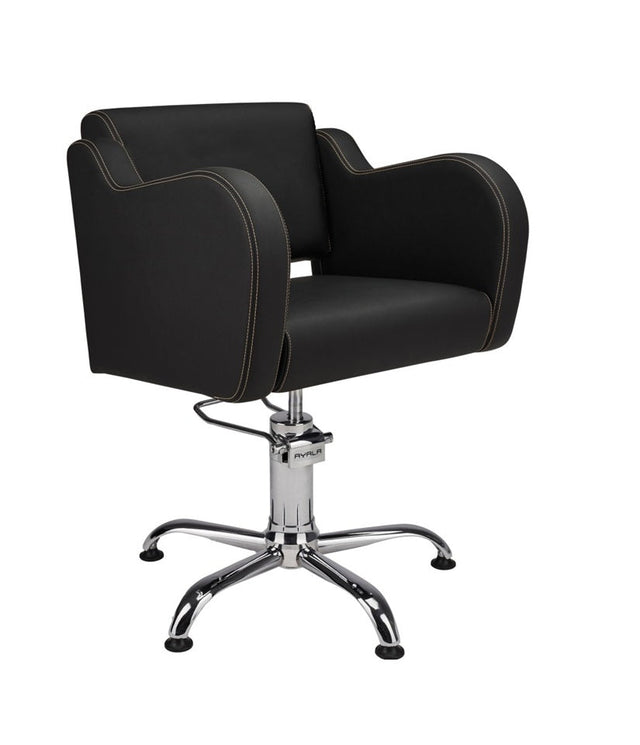 Ayala Holly 01 P-7 Scaun de Coafor Negru cu Cusături Aurii și Bază cu Picioare Negre