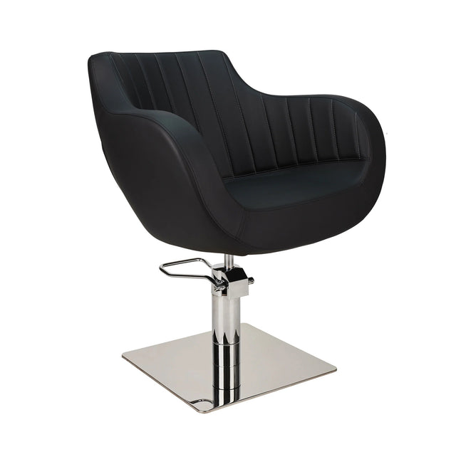 Ayala Thomas P 01 P-7 – Scaun de Coafor Premium cu Cusături Verticale Fine și Bază Pătrată Argintie