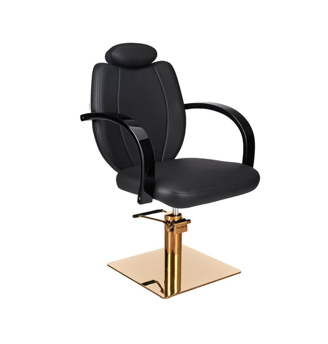Ayala Toledo C1 P-7 Scaun de Coafor cu Tetieră, Cotiere Lăcuite Negru și Bază Pătrată Aurie