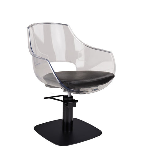 Ayala Ghost 01 – Scaun de Coafor Transparent cu Bază Pătrată Argintie
