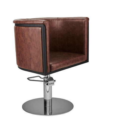 Ayala Gio 01 – Scaun de Coafor Maro cu Bază Rotundă Argintie