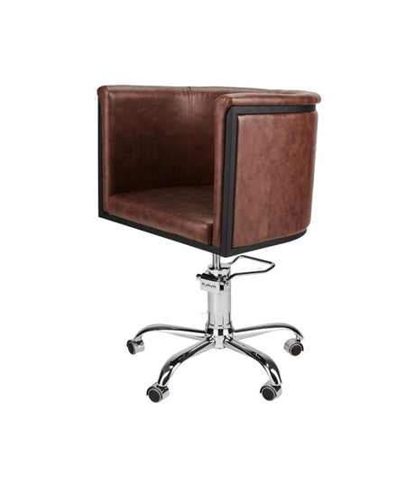 Ayala Gio 01 – Scaun de Coafor Maro cu Bază Cromată pe Roți
