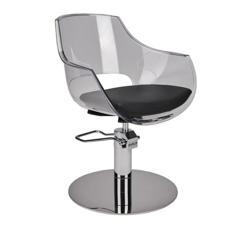 Ayala Ghost 01 – Scaun de Coafor Transparent cu Bază Rotundă Argintie
